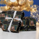 Personalized elegant art deco style wrapping paper with custom photo, stylish squares and custom text on black background