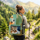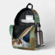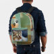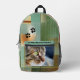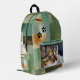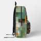 Show off your love for your feline friends with this artistic and modern backpack. Featuring a striking, close-up portrait of a green-eyed tabby cat (or your custom photo!) and playful black paw prints, the design is layered over a sophisticated abstract background of textured greens, teals, and earthy gold tones.