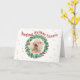 Send warm holiday wishes with this customizable Christmas card featuring a cheerful photo inside a festive wreath design. Perfect for families, friends, coworkers, or pet lovers, this card allows you to add your own photo, personalize the holiday message, and include your family name for a unique touch. Whether you are sending season’s greetings across the miles or sharing joy locally, this personalized card is a thoughtful way to spread Christmas cheer.