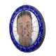 Custom Photo Dartboard template with personalized text and NAVY BLUE 000080 round photo framing surround (other color surrounds available in store). Your face on a dartboard. One click personalize upper and lower text plus replace image, or full customization via Edit Screen. Regulation size with metal frame and 6 brass darts (Stars and Stripes + Union Jack flights). A fun gift for a darts player.
