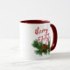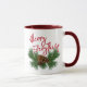 Schöne braune Nadelkronen und grüne Kiefernnadeln Bild. Stilvolle Weihnachtsfeiertage Tasse mit Raum, um mit Text oder Gruß Ihrer Wahl zu personalisieren oder zu personalisieren.