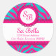 CUSTOM Pink Aqua Zebra Streifen und Spitzen Monogr Runder Aufkleber