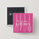 Custom neon pink kitchen utensils name badge pin buttons. Personalized design with spoon knife spatula and whisk in background. Cute requory for Birthday party, cooking or baking class, dinner party usw. Also, Nizza as party favor gift for visitors, friends, family and Verwandte.