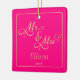 Feiern Sie Ihre erste Weihnachtsfeier zusammen mit diesem wunderschönen Keramik-Ornament! Mit "Mr. & Mrs." in prächtiger Goldkalligraphie-Schrift auf einem auffallend heißen rosa Hintergrund und individuell auf Ihr Foto, Ihren Namen und das Jahr zugeschnitten, ist dieses Ornament ein schöner Sake und auch ein wunderbares personalisiertes Geschenk für ein frisch verheiratetes Paar.