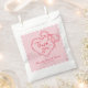Erstellen Sie personalisierte Gefälligkeitssäcke für Ihr Brautparty mit einem trendigen, handgezeichnet Herz mit Bogen, kluger Schrift und einer rosa und roten Farbpalette. Alle Farben sind bearbeitbar! © Kimbellished, LLC