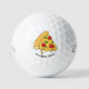 A set of three premium Callaway Supersoft golf balls with a colorful, custom pizza slice design.