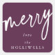 Ein quadratischer Weihnachts-/Feiertagsticker oder Umschlag Aufkleber mit einem handgeschriebenen Sprichwort "merry". Die Erholung des Textes ist vollständig editierbar. Erhältlich in anderen Farben und Aufklebern Formen in meinem Geschäft.