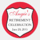 © 2015 Sozialite Designs. Individueller Ruhestandsticker mit einem einfachen Abzeichen-Design mit rotem Hintergrund. Hintergrund und Textfarbe können angepasst werden.