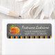 Niedlicher Grußtext "Happy Thanksgiving", der in Typografie auf einem orangefarbenen Kürbis geschrieben ist. Das Design der horizontalen Streifen ist in hellorange, limigrün, weiß und schwarz gehalten und auf grauem Chalkboard-Hintergrund gehalten. Mit Raum, um sich mit Ihrer Familie und Adresse, und die Möglichkeit, mit (begrenztem) Text Ihrer Wahl anpassen.