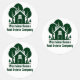 Dieses Anwesen-Firmenlabel ist perfekt für einen Immobilienmakler geeignet, der sich auf Häuser in der Nähe von Wildnis oder Wald spezialisiert hat. Die grüne Silhouette von Bäumen hinter einer Blockhütte Zuhause und personalisiert mit Ihrem Agent und Immobilien-Firmennamen für Marketing-Etiketten im Hinterwald.