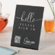 Welcome guests stylishly with this customizable "Hello Please Sign In" pedestal sign for your next real estate open house. This modern, black-and-white table sign features elegant script and a clear call to action. Easily personalize the template by adding your brokerage logo and a QR code for either your website or your own digital sign-in. Pair this sign with our matching Sign-In Sheets, available as a printable or downloadable template, for a professional and cohesive look. All design colors can be edited to perfectly match your brand's style. Need a hand with customization? I'm happy to assist! Perfect for realtors looking for professional, customizable open house signage. © Kimbellished, LLC