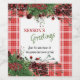 Einzigartiges, klassisches, trendiges, hübsches und dekoratives Firmenweinlabel Holiday. Niedlich Happy Holidays Grußtext und Raum zum Anpassen oder Personalisieren mit einer Nachricht Ihrer Wahl auf der Rückseite der Karte. Gerahmt von Burgunder Rotbeeren und dunkelgrünen Blattweinbäumen auf einem karierten, roten und weißen Tartan-Gingham-Hintergrund.