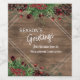 Einzigartiges, klassisches, trendiges, hübsches und dekoratives Firmenweinlabel Holiday. Niedlich Happy Holidays begrüßen Text und Raum, um sich anzupassen oder personalisieren mit einem Firmennamen und Nachricht Ihrer Wahl. Gerahmt von Burgunder Rotbeeren und dunkelgrünen Blattweinbögen auf einem klassischen, verwitterten Bauernhaus-Stil Holzpflanzengeflecht.