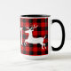 Schöner klassisch roter und schwarzer Buffalo-Karo mit Silhouette aus weißem Hirsch. Stilvolle rustikale Tasse mit Raum zum Anpassen oder Personalisieren mit einem Monogramm oder Initial Ihrer Wahl. Dekoratives, hübsches, modernes und trendiges Design. Und ein sehr cooles Geschenk für Mama zum Vater!
