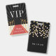 Mit diesen personalisierten VIP-Pässen schaffen Sie eine Hollywood-Atmosphäre bei Ihrem Fledermausmitzvah-Fest. Das individuell anpassbare Abzeichen ist mit einem roten Teppichboden und Samtseilhintergrund mit "VIP" und zwei Textzeilen versehen. Fügen Sie der Rückseite zusätzlichen Text hinzu, der mit weißen und goldenen Konfetti-Punkten überragt ist. Abzeichen können auf Wunsch auch mit dem Namen jedes einzelnen Gastes personalisiert werden.