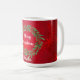 Personalisiert Red Christmas Tasse - Greenery Wreath Frame Holiday Coffee Cup Sip die Saison im Stil mit dieser anpassbaren Weihnachtsfeier Tasse mit einem reichen roten Hintergrund und einem festlichen grünen Kranz-Stil Rundrahmen. Fügen Sie Ihren Namen oder Ihre Urlaubsbotschaft hinzu, um einen einzigartigen Weihnachtskaffee zu kreieren, der sich perfekt für heißen Kakao, Tee oder als nachdenkliches Urlaubspensum eignet.