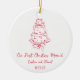 Feiern Sie Ihr erstes Weihnachtsfest als verheiratetes Ehepaar mit diesem bezaubernden Keramik-Ornament, das eine niedliche rote Doodle-Skizze eines Hochzeitskuchens enthält, die durch ein handgeschriebenes Drehbuch betont wird. Das einzigartige Design ist sowohl ästhetisch als auch spielerisch, was es zu einem perfekten Erinnerungsstück für Ihren besonderen Tag macht. Personalisiert mit Ihren Namen und dem Jahr, erweckt dieser Ornament die Freude und Liebe Ihrer ersten Urlaubssaison als frisch vermählte Gäste und verleiht Ihrem festlichen Dekor eine süße und stilvolle Touch.
