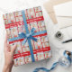 Customize your own red birthday wrapping paper with a cute 5 photo collage. Add the person's name and year in white script above the five photographs for bright, bold personalized gifts.