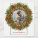 Klassisches individualisierbares Etikett mit saisonaler Beere und Pinenedles Garland. Lassen Sie sich mit einem Foto und einem Namen verwöhnen und geben Sie Ihren Freunden oder Ihrer Familie eine personalisierte Weinflasche für den Urlaub.