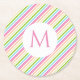 Custom Red Roink Yellow Blue Green Stripes Trendy Monogram Modern Template Round Paper Untersetzer.