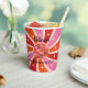 Dies ist ein schöner, individueller Papierbecher für Retro-Junggeselinnen-Abschied mit Diskokugel inmitten von Retro-Sonnenaufgang in Rosa, Orange und Rot mit Retro-Sternen. Sie können den Namen und die Wörter auf der Dose ändern, indem Sie die Schaltfläche Personalisieren benutzen.