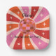 Das ist eine hübsche Papiertafel für Retro-Junggeselinnen-Abschied mit Diskokugel inmitten eines Retro-Sonnenbursts in Rosa, Orange und Rot mit Retro-Sternen. Sie können den Namen und die Wörter auf der Dose ändern, indem Sie die Schaltfläche Personalisieren benutzen.