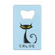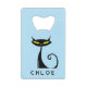 Dieses personalisierte Design der Kreditkartenflasche zeichnet sich durch ein Retro-Design der Mitte des Jahrhunderts modernen "atomaren" schwarzen Katze mit großen gelben Augen und einem lockigen Schwanz aus. Sie können die Rechtschreibung, den Stil, die Farbe und die Größe des Schriftartes mit der Schaltfläche Zazzle Personalize leicht ändern.