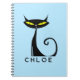 Dieses personalisierte Wendelheft-Design zeichnet sich durch einen Retro Mitte des Jahrhunderts modernen "atomaren" schwarzen Katze mit großen gelben Augen und einem lockigen Schwanz aus. Sie können die Rechtschreibung, den Stil, die Farbe und die Größe des Schriftartes mit der Schaltfläche Zazzle Personalize leicht ändern.