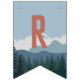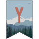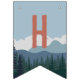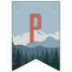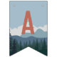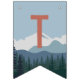 Dieses lustige und abenteuerliche buntfahne Design, das auf die Einladungen unserer On The Edge Kids abgestimmt ist, bietet vierzehn benutzerdefinierte Textfelder, um Ihre Botschaft (mit "Happy Birthday" gezeigt) auf einem Gebirge und Kiefernwald zu vermitteln. Die erste und letzte Fahne zeigen zusätzlich, wie ein Bergsteiger an einem Felsen hängt.