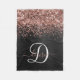 Custom Rose Gold Glitzer Black Sparkone Monogram Fleecedecke