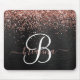 Custom Rose Gold Glitzer Black Sparkone Monogram Mousepad