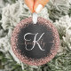 Custom Rose Gold Glitzer Black Sparkone Monogram Ornament