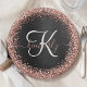 Custom Rose Gold Glitzer Black Sparkone Monogram Pappteller
