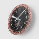 Dieses trendige elegante Uhrendesign mit hübschem vergoldetem Glitzer aus Rose auf schwarz gebürstetem metallischem Hintergrund ist einfach zu personalisieren.
