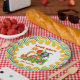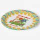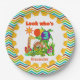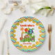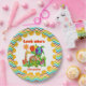Kinder, die drei Jahre alt werden und Tiere, insbesondere Safari- oder Zootiere, Liebe leisten, werden diese farbenfrohen Safari-Teller zum Geburtstag mit DschungelPflanze und Bäumen, Giraffen, Löwen, Geburtstagsballons, Sonne, Text mit dem Titel Look Who is 3, eine Grenze von blauen, grünen, orangefarbenen, braunen und weißen Zickzack Streifen und einen gelben Zierring Liebe! Sie können ganz einfach Ihren Kindernamen hinzufügen, um diese Safari-Teller zum 3. Geburtstag zu personalisieren!