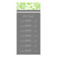 Spezielle Salon-Menü-Karten in eleganten und femininen hellen Apfelgrün, dunkelkohlegrau und weiß klassischen Blumenstaubmuster. Personalisieren Sie diese Preislisten mit all Ihren Salon- oder Wellness-Center-Services, um Ihren Kunden einen schnellen und einfachen Weg zu bieten, alle ihre Optionen zu kennen. Kontaktieren Sie uns für eine benutzerdefinierte Farbe oder für passende Produkte für kleine Unternehmen.