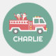 Custom Santa Claus auf einem Weihnachtsfeuerwagen Runder Aufkleber