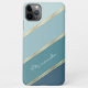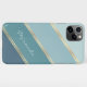 Zeitgenössisch gürlich aquamarin blau und ozeangrün gefärbte gestreifte Handy-Gehäuse. Mit Raum zum Anpassen mit einem Namen, Monogramm oder Initialen Ihrer Wahl. Schönes, modernes und cooles Cover für den Trend-geschickten und kunstliebenden angesagten Trendsetter, künstlerischer Motif-Liebhaber, der will, ihr Handy vor Staub und Schmutz, Abnutzung und Tränen zu schützen. Dieses Design ist für Apple iPhone 6, 7, und 8 Plus, 10 oder X, XR, XS, 11, 12, 13 Mini, und 14 Pro Max Handy Hüllen erhältlich. Zeigen Sie Ihren Stil, sehen Sie modern aus und fühlen Sie sich stilvoll mit einem einzigartigen Design auf einem mobilen Zubehör Ihrer Wahl.