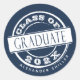 Cooler und moderner blauer Aufkleber mit weißem "Klasse"-Text in einem Kreis, der eine Briefmarke simuliert. Fügen Sie einfach den Namen und den Abschluss Jahr. Benutzen Sie es als Graduierungspartei bevorzugen Dekoraufkleber oder Umschlag Aufkleber.