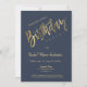 Erschaffen Sie eine personalisierte und prächtige, schicke und minimalistische Geburtstagsparty Einladung für Ihre besondere Person! Diese Einladung beinhaltet ein großes und schönes Kalligraphieskript, das in Imitate mit Goldfolienschrift und schwarzem Chalkboard-Hintergrund geschrieben ist. Sie können ihn ganz einfach mit Ihrem eigenen Text anpassen und nach Ihren Wünschen anpassen. Bitte beachten Sie: Das "Geburtstag"-Grafikwerk kann nicht bearbeitet werden. Zusätzlicher Hinweis: Der Goldfolienprint ist ein Goldfolieneffekt von Imitaten. Es ist NICHT die eigentliche Heißprägefolie.