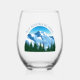 Maßgeschneidertes Weinglas für eine Skihütte oder einen Ferienort in den Colorado Bergen oder eine schöne Hütte im Wald. Dieses coole Design besticht durch einen hübschen zeichn schneebedeckter Berge vor grünen Tannenbäumen. Grosses Natur Marketing für ein Hotel oder Ferienvermietung.