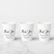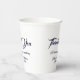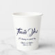 Eleganter dunkelmarineblau und weiß angepasster Skripttext Wedding Paper Cups Vielen Dank. anpassbarer Text, Namen und Datum.