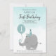 Custom Sky Blue White Elephant Balloon Thema Einladung