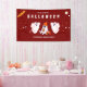 Celebrate the spooky season in style with this customizable Halloween party banner designed especially for small businesses! Featuring a cute ghost in a beanie, eerie purple skulls, floating spirits, bats, pumpkins, spiderwebs, and bold "Happy Halloween" text – this banner brings playful yet professional Halloween vibes to your office or store. Add your business name (like “GEORGE SAMUEL & CO”) for a personalized touch. Ideal for Halloween office parties, customer events, or promotional displays.
