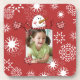 Fügen Sie unseren Snowman Foto Untersetzer einfach ein beliebtes Foto hinzu, bevor Sie bestellen. Ein Schneemann auf rotem Hintergrund mit vielen hübschen weißen Schneeflocken und einem Bereich, in dem Sie Ihr LieblingsFoto auf den Untersetzer, die Sie während des ganzen Winters Liebe!
