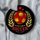 A vibrant soccer graphic uses bold shapes and dynamic color contrast to create an energetic emblem that reflects team spirit and athletic pride. The design’s balanced layout and striking visual language bring out a sense of movement and excitement. With personalization options available to incorporate names or messages, this design becomes a meaningful soccer gift — especially for birthdays, celebrations, or special recognition for young athletes like sons or nephews who love the sport.