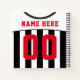 Dieses Design ist ein Fußball / Fußball Stil Jersey mit schwarzen senkrechten Streifen und schwarzen Trimm, die Hintergrundfarbe kann geändert werden, klicken Sie einfach auf CUSTOMIZE. 8,5" x 8,5" Spiralfolien mit laminierten Covers, und eine Auswahl an Papier Stil, einschließlich Sketchbook, regiert, Hälfte regiert. Die Vorderseite und die Rückseite der Notebooks sind im Jersey-Stil gestaltet, sodass Sie Ihren eigenen Namen und Ihre eigene Nummer hinzufügen können. Verwenden Sie die Felder rechts neben dem Bild, um den Text zu ändern. Diese Notizbücher eignen sich hervorragend zum Skizzieren, Listenmachen, behaltend Rezept, zum behalt Ihrer Sportstatistiken und zum Verleihen von Schulgeschenken für Schüler. Einzigartige personalisierte, maßgeschneiderte Sportjersey-Geschenke für Sportfans und Spieler in Ihrem Leben!