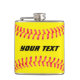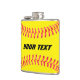 Custom Softball Flask: Ein großartiges Geschenk für Softball-Spieler, Fans oder Trainer. Fügen Sie Ihren eigenen Text in das Textfeld, oder verlass es Flask für ein einfaches Softball-Design. Mit hochwertigen roten Stichen und der gelben Softballfarbe.