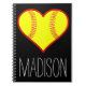 Custom Softball Heart Spiral Notebook: Ein niedliches Notizbuch für schnelles Softball-Schüler, das zur Schule oder anderswo mitnimmt. Geben Sie den Namen des Spielers in das benutzerdefinierte Textfeld ein, um ihn zu personalisieren!