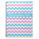 Ein stilvolles Spiral-Notebook, das Sie persönlich gestalten können. Zickzack Muster in Türkis Blau, Candy Pink und Light Lila. Wenn Sie es vorziehen, Ihrem Notebook keinen Text hinzuzufügen, löschen Sie einfach den Text und verschieben das Muster nach oben, bis das schlichte blaue Band verschwindet, indem Sie die Schaltfläche Anpassen verwenden.